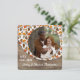 Unique, classy, trendy, pretty and decorative Thanksgiving holiday card. Cute WITH LOVE FROM text and room to customize or personalize with a photo and names (or family name) of your choice. With classic warm autumn orange, red and brown botanical leaves pattern and a farmhouse style weathered wooden look background design. And a customizable thoughtful fall season greeting poem on the backside of the card.