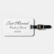 Custom luggage tag is shown in a black and white style with Just Married text.