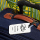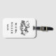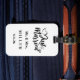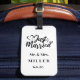 Custom luggage tag is shown with a Mr. & Mrs. Just Married text.