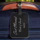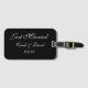 Custom luggage tag is shown in black and white with Just Married text and sample names, customize this tag and change the sample names and date to yours with this template.