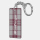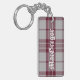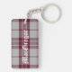 Stylish key chain done in the classic maroon and light gray MacGregor Scottish tartan plaid pattern. Bold white old world style text, on the front and back, is ready to personalize for yourself or as a great gift idea.