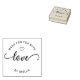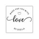 This simple "Made with love" rubber stamp features a heart with a custom name.