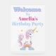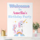 Celebrate your child's special day with our enchanting personalized rainbow unicorn birthday welcome sign!