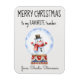 A cute Merry Christmas flexible magnet for the teacher or any other favorite person. A happy snowman inside a snow globe on a decorative blue gold and red stand. The background is a platinum color. Easily change add-to or remove any text using the Template provided. If you need more text space change upper to lowercase letters. Water and stain resistant. Choose 3"x4" (shown) or 4"x6". See "About This Product" at side for more information.