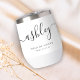 Custom Maid of Honor Script Calligraphy Name Thermal Wine Tumbler. Easy to customize elegant script typography monogram. Perfect wedding party or bridal party accessory gift idea!