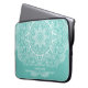 Custom Mandala Art Pattern On Light Teal Blue Laptop Sleeve