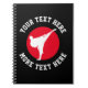 Custom martial arts karate kick silhouette lined notebook. Printed Birthday party favor gift idea for kids, children, instructor, martial arts teacher, trainer, coach, friend, team, sports club etc. Personalized text and customizable background color. Add personalized name, school name, funny quote, slogan or monogram. Red hot rising sun with silhouette of fighter. Also great for other Asian fight sports like ju jitsu, taekwondo, judo, aikido, kickboxing, jiu jitsu, muay thai etc. Round shape. Change quantity to get the cheap bulk discount price. Personalized school and office supplies.