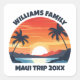 These cool sunrise Maui Hawaii stickers feature your personalized group name for a family reunion or trip to this Hawaiian island. Cute vacation keepsake souvenir with an orange sun over the blue ocean waters of your cruise or coastal destination.