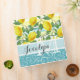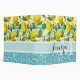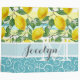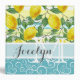 Beautiful contemporary aqua turquoise blue, green, yellow and orange lemon fruit pattern on striped watercolor background. With room to customize or personalize with name, monogram or initials of your choice. Ornate, funky, modern and whimsical hipster design for the artistic fashionista or artsy fashion diva, hip trendsetter, vintage retro watercolor painting art style or abstract motif lover.