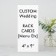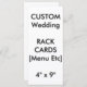 Custom Menu & Program Rack Cards, printed on bright white cover weight (100 lb.) card stock with a gloss finish, high quality, full-color, full-bleed printing. 4" x 9" (portrait) or 9" x 4" (landscape) options. Minimum 25 card order. Up to 50% off for bulk orders.