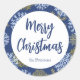 Custom Merry Christmas Blue Winter Snowflakes Classic Round Sticker