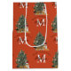Custom Merry Christmas Monogram Tiger & Tree Red Medium Gift Bag