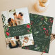 Custom Message 3 Photo Green Botanical Christmas Holiday Card