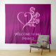 A really pretty tapestry with a welcome home message that you can change to your own. It features an embossed-look, filigree heart and roses on a contrasting, aubergine background .