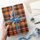 This Christmas wrapping paper features a festive plaid design in warm red, orange, green, and black tones, adorned with small reindeer silhouettes to add a touch of holiday spirit. The text is customizable, allowing you to personalize each gift with a unique message, or you can delete the text entirely if you prefer a simpler look. This aspect makes the wrapping paper and your personal message suitable for many occasions, including Christmas. This classic and cozy pattern is perfect for adding a traditional holiday feel under the Christmas tree.