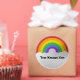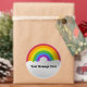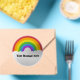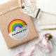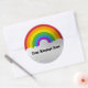 This round sticker is ready to be customized with your own message, add a name or your own special saying. It features a retro style illustration of a rainbow in bright colors with your text in bold black lettering in the clouds below.