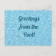 Send some cool greetings with this postcard featuring your own custom text beneath some cool blue swimming pool water. It's perfect for cooling off in the summer heat or sending a special message to your favorite swimmer or swim coach.