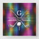 Custom Metallic Colorful Golf Monogram Design Square Wall Clock