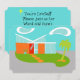 These Customizable Mid Century Modern Cartoon House Invitation will have you wanting to put out the WELCOME mat and make yourself at home! The 1960's, minimalist art design features a sleek, orange stone and aqua glass house on a lush, green, boomerang shaped lawn. The lawn forms an oasis in the middle of its grey, concrete surroundings. A green palm tree is swaying in the breeze. Four, orange stepping stones lead the way to the retro, red, front door with three, rectangular, glass window panes. To the left of the door, a turquoise flowerpot holds a tropical, green plant. The house has a sloping, V shaped white roof that is pointing toward two, white, kidney bean shaped clouds. The sky is a positively serene shade of aqua. The opposite side is aqua and can be personalized for your special occasion. No one will want to throw stones from this modern, glass house design! Buy this kitschy, space age product and be the coolest cat on your block!
