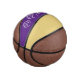 Custom mini basketball is shown here with color accents of purple and gold with a dog paw print.
