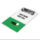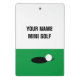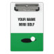 Custom miniature golf scorecard holder Mini Clipboard. Personalized accessories for golfing business, club, restaurant, game center, driving range etc. Modern design with ball and putting hole. Green or custom colors. Add your own company name, address or quote. Handy for visitors to keep score on.