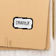 Simple personalized rectangle name patch. Minimalist design with black lining and black printed custom name set against the white background. Use it as an identification on your work shirts or cap, backpack, shoes or any other item that you want to personalize with your name.