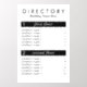 Custom Modern Simple Minimalist Professional Business Building Directory Wall Decal Sticker. With black text on white background. Perfect for small business buildings, offices, schools, universities. Size is 20 x 30 inches, can be resized to smaller or larger. For custom made decals for taller buildings or other size design feel free to contact the Creator.