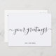 Personalized Universal Greetings Postcards featuring your greetings message in elegant handwritten script font, your name, date, year, message on the back in a modern and vintage typewriter distressed font. Create your own greetings postcards with this elegant template, perfect for thank you cards, merry christmas, postcards, weddings, bridal shower, and bridal shower thank you cards, baptism, first communion, birthday, baby shower and any special celebration.