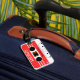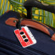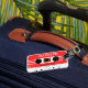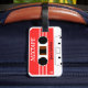 A custom luggage tag featuring an image of a red mixtape which can be customized on both sides with your own text!