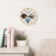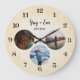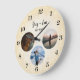 Custom Modern 3 Photo Collage Newly Weds Gold Large Clock
