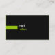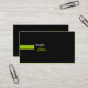 A simple modern design. The color of the green rectangle and the green text can be changed, when customizing change the background color to change the color of the green rectangle, then change the color of the green text on front and back to match it, if you have any questions on how to do this I would more than happy to help!