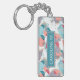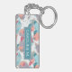 Durable rectangular key chain with classy, fun and contemporary pastel turquoise, teal blue, coral orange, light violet purple, and taupe brown colored abstract geometric triangles, polka dots and half circles mosaic pattern design on a white background. With room to customize or personalize with name of your choice. To attach to your purse or backpack zipper, to hold loyalty rewards or membership cards, or of course... to hold keys! What ever keys you want to stay in place and hold together, a unique personalized key ring will make it look nicer and also easier to recognize as your own set. Click on our store name to check out more unique key holders with other custom designs.