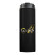 Custom Modern Black Monogram Gold Script Name Thermal Tumbler