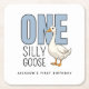 Custom Modern Blue One Silly Goose First Birthday Square Paper Coaster