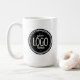 A personalized two-sided branded coffee mug with your business's professional logo on it. Just fill in the black round placeholder image space with your company's logo.
