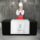 A custom hand drawn cake modern printed tapestry that can be customize to a table runner for your pop up shop. Customize the table runner with your business modern text and create your own table runner for your craft shows and vendor events. Perfect for trade shows, pop up shops, expos etc. Ideal for homemade sweets, desserts businesses and pastry chefs. Simply customize text and your own image or leave the hand drawn cake image as is.