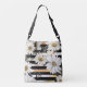 This is an elegant tote bag featuring simple orange script on a black and white striped background with white daisies all over.. Easy to personalize for your bachelorette party, hen night, or girls' weekend! It will also be perfect for a beach bag, diaper bag or an everyday bag.