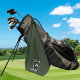 Golf themed monogram logo style graphic with monogram initials. The Personalized Elegant Modern and Sophisticated Golfer Monogrammed Golf Towel is the perfect accessory for any avid golfer. Each towel is personalized with a monogram name, adding a touch of sophistication and exclusivity to your golfing experience. Choice of colors and text styles. Add monogram initials or name. Classic green, black and white.