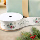 Wrap your gifts with understated elegance using this holiday ribbon featuring a repeating watercolor motif of the green lantern, botanical foliage, and gold snowflake, printed on a crisp white background. The design is evenly spaced and clean, with editable text shown in the preview.