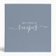 Add your custom name and make this elegant minimalist recipe 3-ring binder a personal inspiration for all your cooking. Chic hand lettered script and the dusty blue and white typography design make this cookbook a beautiful and unique addition to your family kitchen.