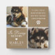 Custom pet memorial plaque to remember your furry family memember. Display this modern chic pet loss memorial plaque in your home with love and pride. Perfect for those little four legged creatures who you all loved and adored. Featuring two square instagram pictures of your cat or dog, the sweet sympathy quote that reads 'If love could have saved you, you would have lived forever.', a cute paw print, elegant calligraphy font 'in loving memory', a white heart, their name and dates. This contemporary plaque which is available in 4 lush colors would make a wonderful pet loss gift for yourself, family or friends.