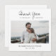 This simply stylish wedding thank you card features words of thanks above your favorite photo and your first names and date below it. We've chosen a warm, modern script for 'Thank You' and added 'for sharing our special day' underneath, with that line separated by the the loop of the 'Y', enhancing its relaxed, intimate charm. This message makes this card particularly well suited to expressing your thanks specifically to those who were able to attend your wedding party. You can edit it to express a more general message of thanks, but the nature of the design might limit your options as far as appearance goes, depending on how long your desired message is and how the words can be arranged with the 'Thank You' above them. The text is a very dark gray that is in fact mostly black. You can of course change this to any color that suits your style and your day, be it true black or another hue. You can also choose a different font for any or all of the text. You might even want to change the thank you wording or other text to something completely different. We've chosen a transparent background, which lets the color of the card simply serve as the base tone, but you can choose a color instead. Similarly, on the back we've used the same very dark gray tone on a transparent base, and we've put some placeholder text there for you to delete and replace with your own message, with or without your names, if you want to sign by hand when you get the cards. But you might also simply choose to delete our placeholder text and leave the back entirely blank so that you can write a message by hand on each card and sign your names. In any case please do remember that there's placeholder text on the back as well and to delete all of our sample/placeholder text on both sides of the card! Use the intuitive design tools, your favorite photo and your inspiration to make this chic modern wedding thank you card uniquely yours!