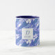 Sip in style with our Humpback whale inspired monogrammed floral mug featuring blue and white whales swimming through clouds and waves, illustrated by Jo Story of Sketchbook Designs, it's a delightful gift for whale lovers. Add a touch of fun whale whimsy to your mornings!