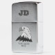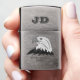 Custom monogram American eagle head Zippo Lighter gift for men. Personalized design with custom initials and quote.