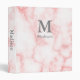 Custom Monogram and Name on Pink Marble Look 3 Ring Binder
