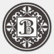 Decorative Initial Monogram Stickers with a white swirls pattern on a black background framing your elegant monogram .