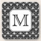 Custom Monogram. Black and White Damask Pattern. Coaster