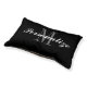 Custom monogram dog bed with zippered cover. Elegant typography design with script text. Personalized gift idea for new pet owner and animal. Black or custom background color. Add your own doggy name or quote. Available for inside and outside. Small and large sizes with zipper. Trendy indoor / outdoor pillow cushions for pets.