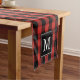 Custom Monogram Black Red Buffalo Plaid Pattern Short Table Runner