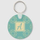 Custom Monogram Blue Floral Pattern Keychain